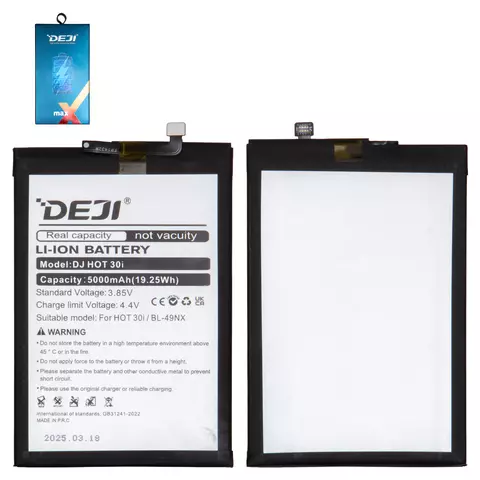 Аккумулятор Deji BL-49NX для Infinix Hot 30i (X669), Smart 7 (X6515), Li-ion, 3,85 B, 5000 мАч