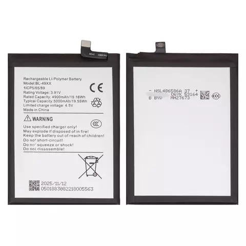 Аккумулятор BL-49XX для Infinix GT 20 Pro (X6871), Note 40 (X6853), Note 40 Pro 5G (X6851), Li-Polymer, 3,91 B, 5000 мАч, Original (PRC)