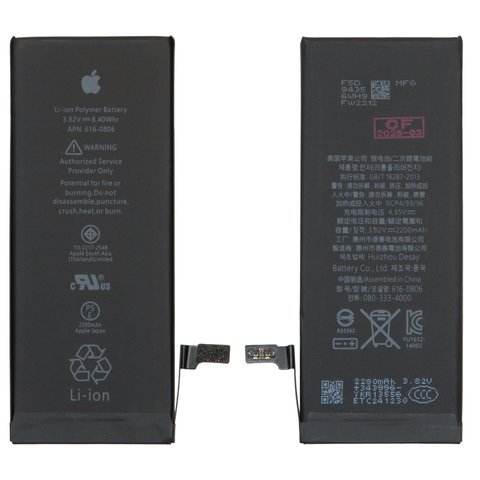 Аккумулятор для iPhone 6, Li-Polymer, 3,82 B, 2200 мАч, повышенная ёмкость, original IC, #616-0806