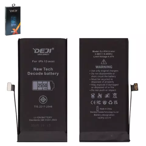Аккумулятор Deji для Apple iPhone 13 mini, Li-ion, 3,88 B, 2550 мАч, повышенная ёмкость, без ошибки, decode battery