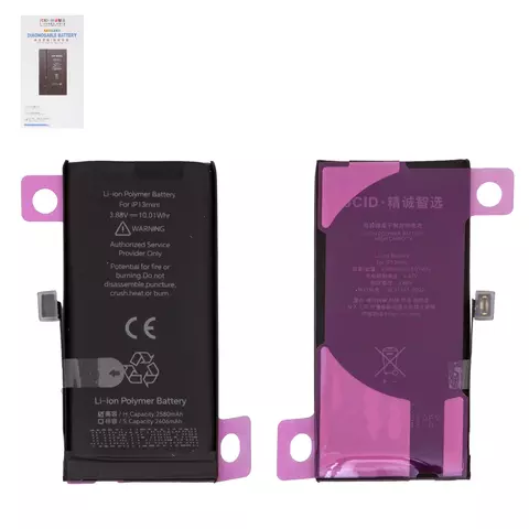 Аккумулятор JCID для Apple iPhone 13 mini, Li-Polymer, 3,88 B, 2580 мАч, повышенная ёмкость, без сообщения об ошибке, high capacity diagnosable battery
