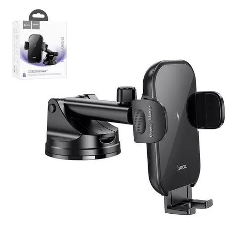 Автомобильный держатель Hoco HW5, черный, выдвижной, вакуумная присоска, с беспроводной зарядкой, c кабелем, 15 Вт, #6942007601450