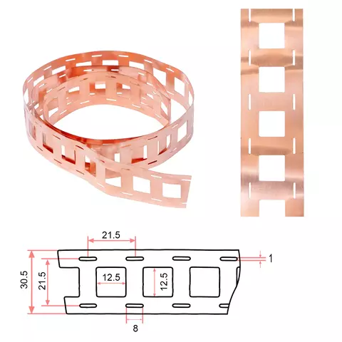 Медная лента для сварки аккумуляторов 21700 2P, 0,2 мм, 21,5 мм, 1 м