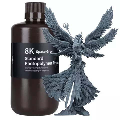 ELEGOO 8K Standard Photopolymer Resin — жидкая смола, разработанная и оптимизированная для LCD-печати с разрешением 8K и выше. Также совместима с принтерами, использующими технологию источника УФ-света с длиной волны 405 нм. Особенно эффективна в работе с ELEGOO Saturn 2 / 3 / 3 Ultra, Mars 4 / 4 Ultra и т.д.