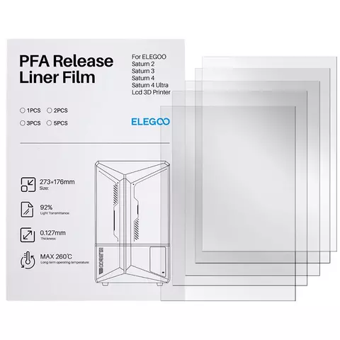 Высококачественная PFA-пленка для 3D-принтеров ELEGOO Saturn 4/4 Ultra/4 Ultra 16K обеспечивает надежное отслаивание, высокую светопропускаемость (92%) и длительный срок службы – до 60 000 циклов. Устойчива к температуре, химии и УФ-излучению, идеально подходит для точной и стабильной печати.