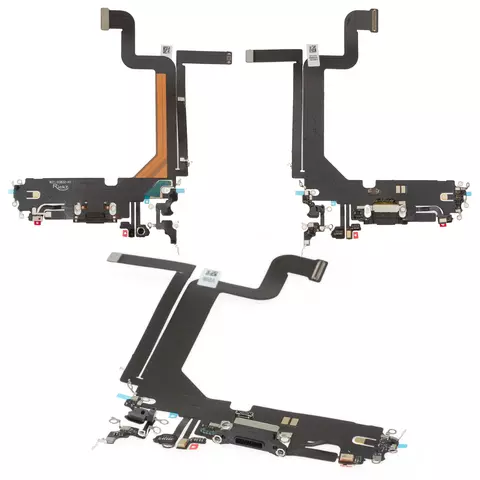 Шлейф для iPhone 14 Pro Max, коннектора зарядки, черный, с микрофоном, с компонентами, HC