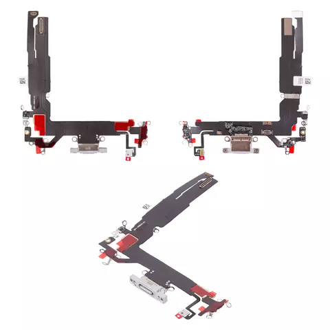 Шлейф для iPhone 16, коннектора зарядки, белый, с микрофоном, HC