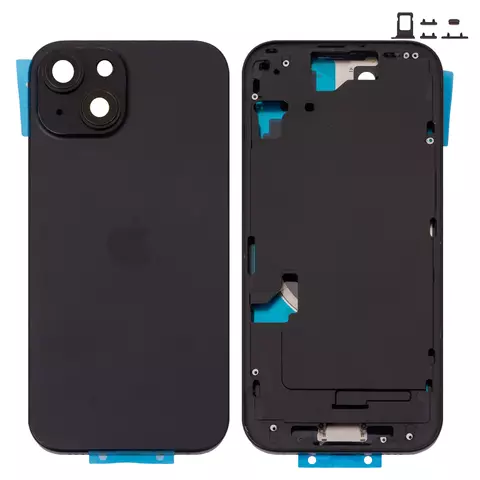 Корпус для iPhone 15, черный, с держателем SIM-карты, с боковыми кнопками, Original (PRC), EU version