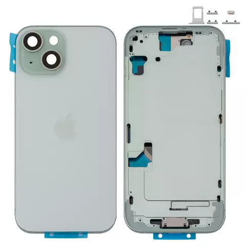 Корпус для iPhone 15, зеленый, с держателем SIM-карты, с боковыми кнопками, Original (PRC), EU version