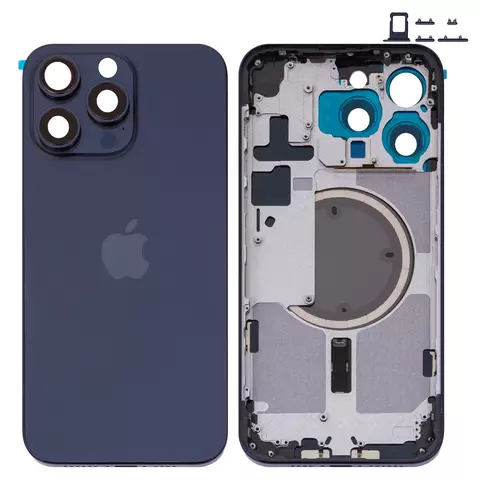 Корпус для iPhone 15 Pro Max, синий, с держателем SIM-карты, с боковыми кнопками, Original (PRC), EU Version, blue titanium