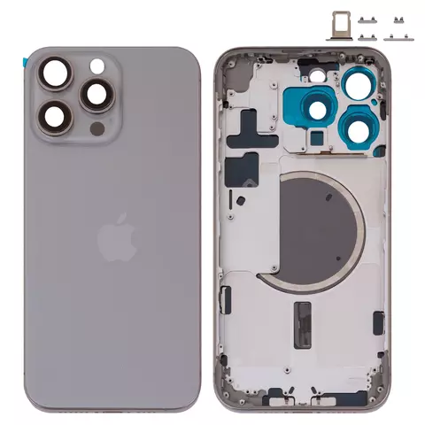Корпус для iPhone 15 Pro Max, серый, с держателем SIM-карты, с боковыми кнопками, Original (PRC), EU Version, natural titanium
