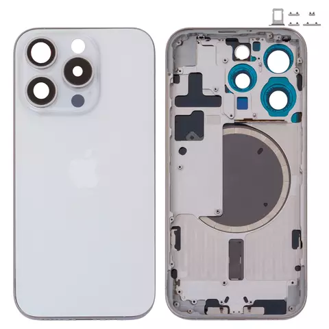 Корпус для iPhone 15 Pro, белый, с держателем SIM-карты, с боковыми кнопками, Original (PRC), EU Version, white titanium