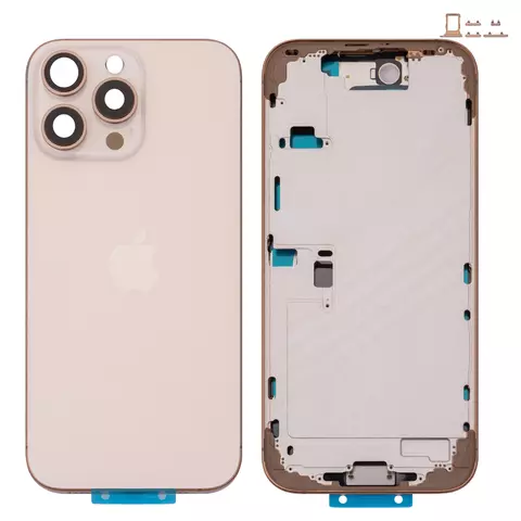 Корпус для iPhone 16 Pro Max, золотистый, с держателем SIM-карты, с боковыми кнопками, Original (PRC), EU Version, desert titanium