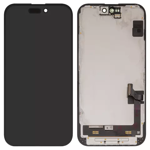 Дисплей для iPhone 15, черный, с рамкой, переклеено стекло