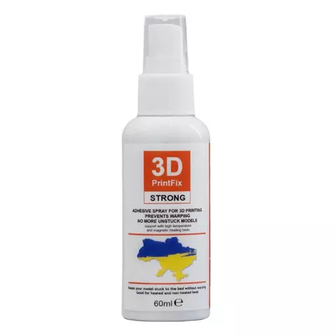 3D PrintFix Strong — специальный клей-спрей для лучшего прилипания первого слоя филамента к рабочей поверхности 3D-принтера. Его основная цель — надёжно зафиксировать модель, предотвратить её деформацию и отслаивание во время печати, что является распространённой проблемой, особенно с такими материалами, как ABS, ASA и PETG.