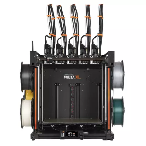Prusa XL — широкоформатный 3D-принтер с 5 экструдерами, функцией быстрой замены головок, печатью без отходов в один клик и полностью автоматической калибровкой. Prusa XL способен работать с несколькими цветами/видами филаментов без смешивания – особенно полезно, когда поверхность трехмерного изделия требует качественного и прочного материала, а для внутреннего наполнения подходит более простой и доступный.