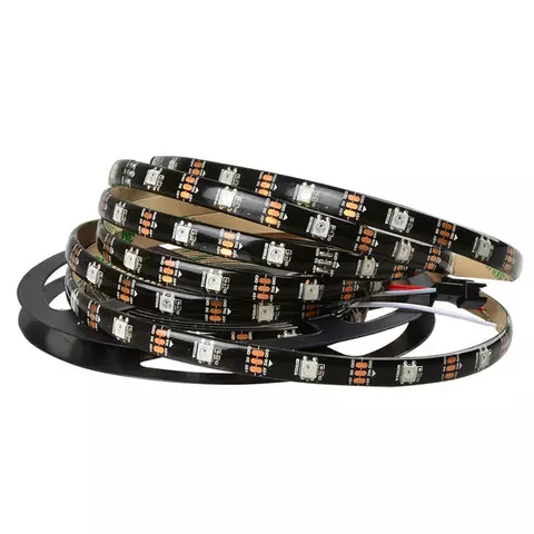 Светодиодная лента RGB SMD5050, WS2812B (черная, c управлением, IP65, 5 В, 30 диодов/м, 5 м)
