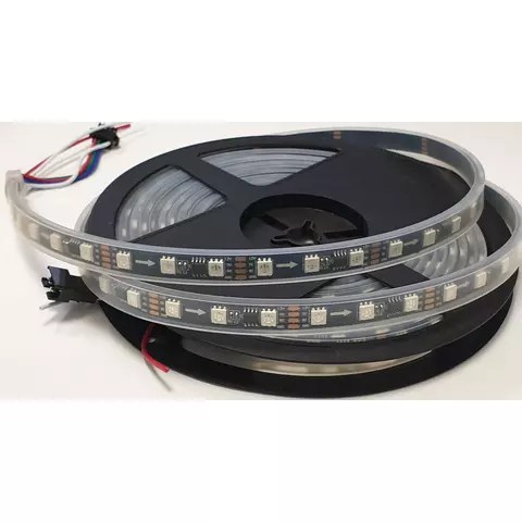 Светодиодная лента RGB SMD5050, WS2818 (черная, c управлением, IP67, 12 В, 60 диодов/м, 5 м)