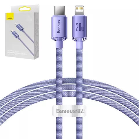 USB кабель Baseus Crystal Shine Series, USB тип-C, Lightning, 120 см, 20 Вт, фиолетовый, в нейлоновой оплетке, #CAJY000205