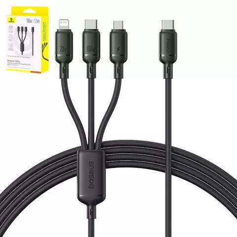 USB кабель Baseus Silky, micro-USB тип-B, Lightning, 2xUSB тип-C, 150 см, 100 Вт, черный, 3 в 1, #P10377706123-00