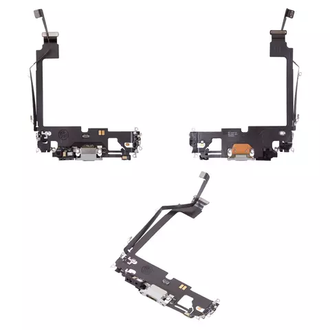 Шлейф для iPhone 12 Pro Max, конектора зарядки, білий, з мікрофоном, з компонентами, Original (PRC)