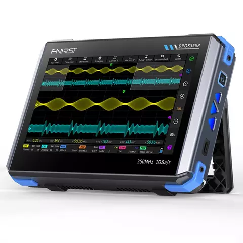 FNIRSI DPOS350P — це високопродуктивний багатофункціональний універсальний осцилограф, що підходить для широкого спектру промислових і дослідницьких завдань. Завдяки потужній інтегрованій конструкції, високій частоті дискретизації і широкій смузі пропускання він здатний точно аналізувати складні сигнали, забезпечувати чітке відображення форми сигналу і інтелектуальний тригер. Вбудований дисплей з високою роздільною здатністю, сенсорне управління, інтелектуальна тригерна система і кілька режимів вимірювання роблять його точним і надійним інструментом для тестування й аналізу в лабораторіях, на виробничих лініях і в сервісних центрах.