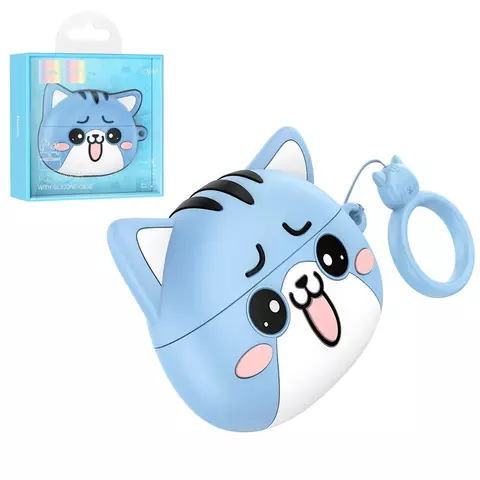 Гарнітура Hoco EW48, бездротова, блакитна, біла, з силіконовим чохлом, glacier cat, #6942007609999