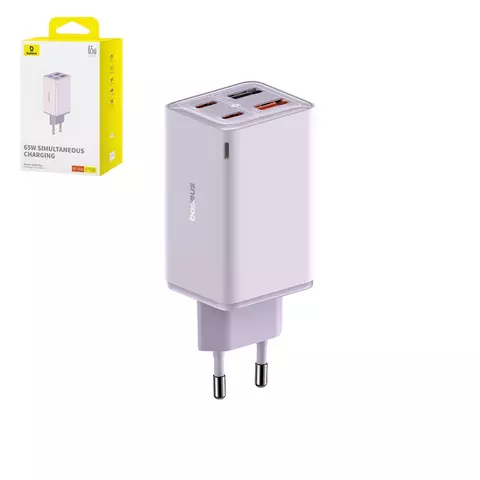Мережевий зарядний пристрій Baseus GaN6 Pro, 65 Вт, Power Delivery (PD), Fast Charge, фіолетовий, 4 порта, #P10162701533-00
