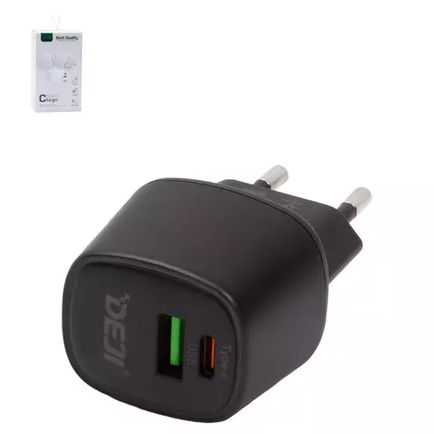 Мережевий зарядний пристрій Deji A88, 20 Вт, чорний, 2 порта