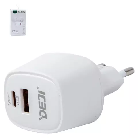 Мережевий зарядний пристрій Deji DJ-A88, 20 Вт, білий, 2 порта
