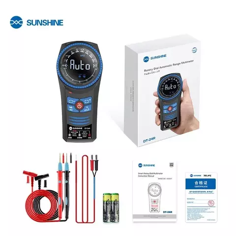Цифровий мультиметр Sunshine DT-24R — це професійний вимірювальний прилад нового покоління, розроблений для точної діагностики електронних компонентів і побутових пристроїв. Оснащений поворотним перемикачем, автоматичним вибором діапазонів і кольоровим РК-дисплеєм із чітким відображенням даних, він забезпечує комфортну роботу навіть у складних умовах освітлення. Підтримує вимірювання напруги, сили струму, опору, ємності, частоти, температури та перевірку діодів і транзисторів.