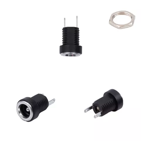 Роз'єм живлення DC022B, 5.5 x 2.5 mm, "мама", з глибиною 9 мм, з різьбою на панелі, для паяння