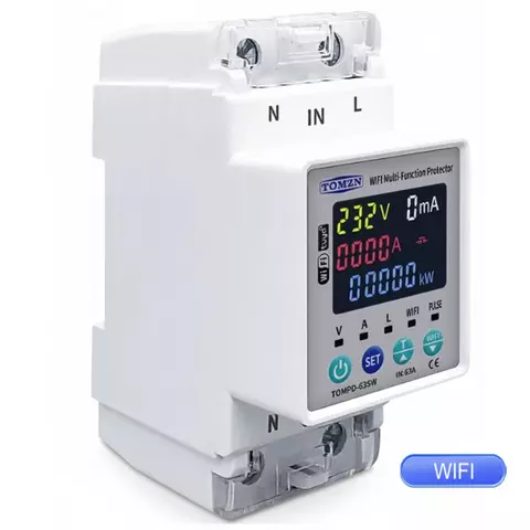Розумний лічильник TOMZN TOMPD-63SW, з WiFi, 220 В, 1-63А, з захистом по струму і напрузі, з диференційним захистом