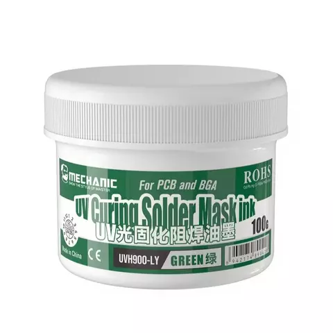 Паяльна маска Mechanic UVH900-LY, зелена, ультрафіолетова, лак ізоляційний, 100 г