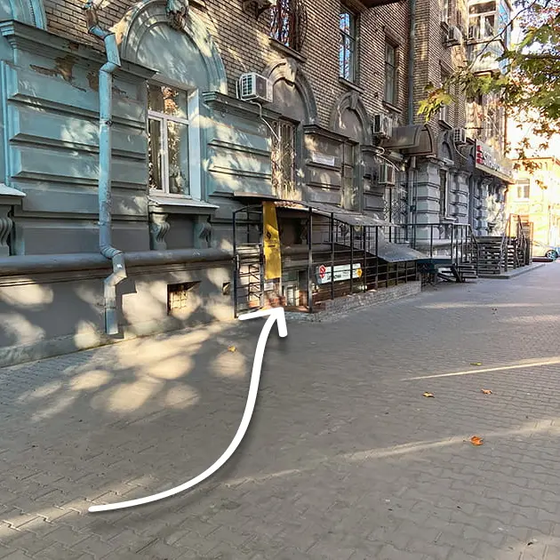 Вхід з боку вулиці Володимира Мономаха. Поруч - Дніпровський академічний молодіжний театр.