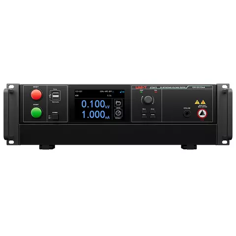 UNI-T UT5470 – це тестер напруги для випробувань на діелектричну міцність змінним струмом (10 кВ/20 мА). Модель спеціально розроблена для надійних випробувань високовольтних компонентів та діелектричних матеріалів. UT5470 оснащений функцією OSC (перевірка обриву/короткого замикання), яка перевіряє цілісність з'єднання з пристроєм, що тестується, перед подачею високої напруги.