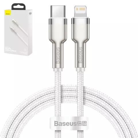 USB кабель Baseus Cafule Series Metal, USB тип-C, Lightning, 200 см, 20 Вт, білий, в нейлоновому обплетенні, #CATLJK-B02